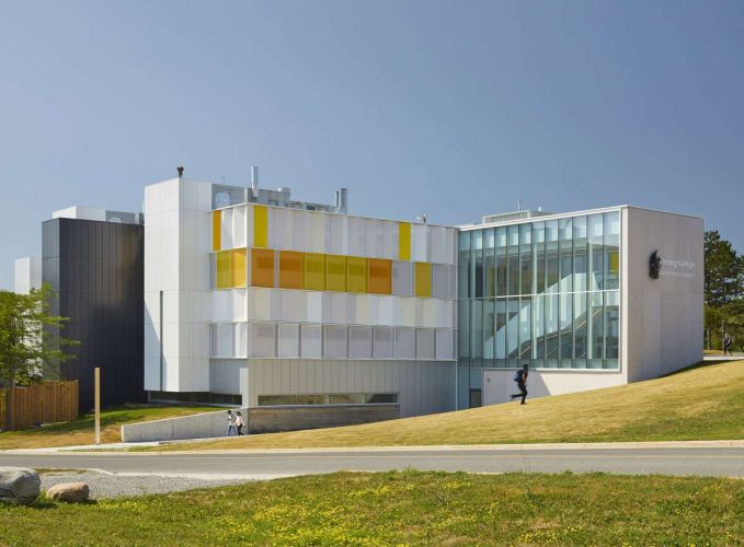 Engineering Link provided Structural and Building Envelope services for the 76,000 sq. ft. revitalization of Fleming College’s A-Wing at the Sutherland Campus. Completed while the building remained in use, the project modernized the space to enhance circulation and energy performance. Our scope included a new ground floor entrance, a feature stair, exterior retaining walls, clearstory framing, cladding and parapet connection design, and support structures for AV equipment.