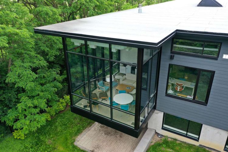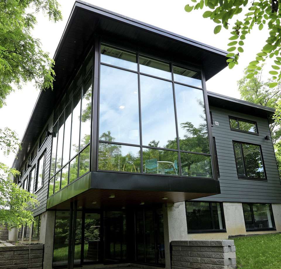 A 10,800-squre foot single-storey office with a basement, designed to blend with the nearby river and forest. A slim roof profile and cantilevered north end enhance natural light and connection to the landscape. We provided shop drawing reviews and construction oversight for this tranquil, light-filled workspace.