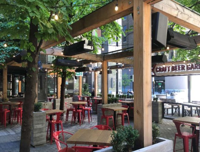 Our scope for this renovation project required for us to prepare and issue structural contract documents which included new raised dining areas on the ground floor, kitchen equipment and keg room load checks on the ground and second floor, exterior patio bar permanent structures including a new pergola over the exterior courtyard and concrete planters, exterior sign support (Yonge St. Elevation), hanger support system, and suspended draft beer lines from keg room to the bar.